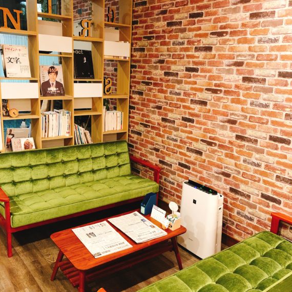 カフェエリアでコーヒーを入れ、公園の芝生をイメージしたグリンエリアでコーヒーと共に読書を楽しむ。