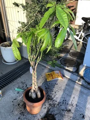 という訳で、こちらが土替え後のパキラ。