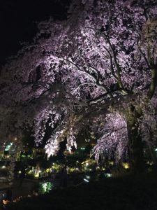 筆者は膨大な課題とサークル活動に追われてゆっくりと桜を楽しむ余裕が無いのですが、先日帰宅途中にライトアップされた桜を見かけました(画像)。夜桜って淡い色の花が夜の暗さにより一層引き立てられてとても綺麗ですよね。