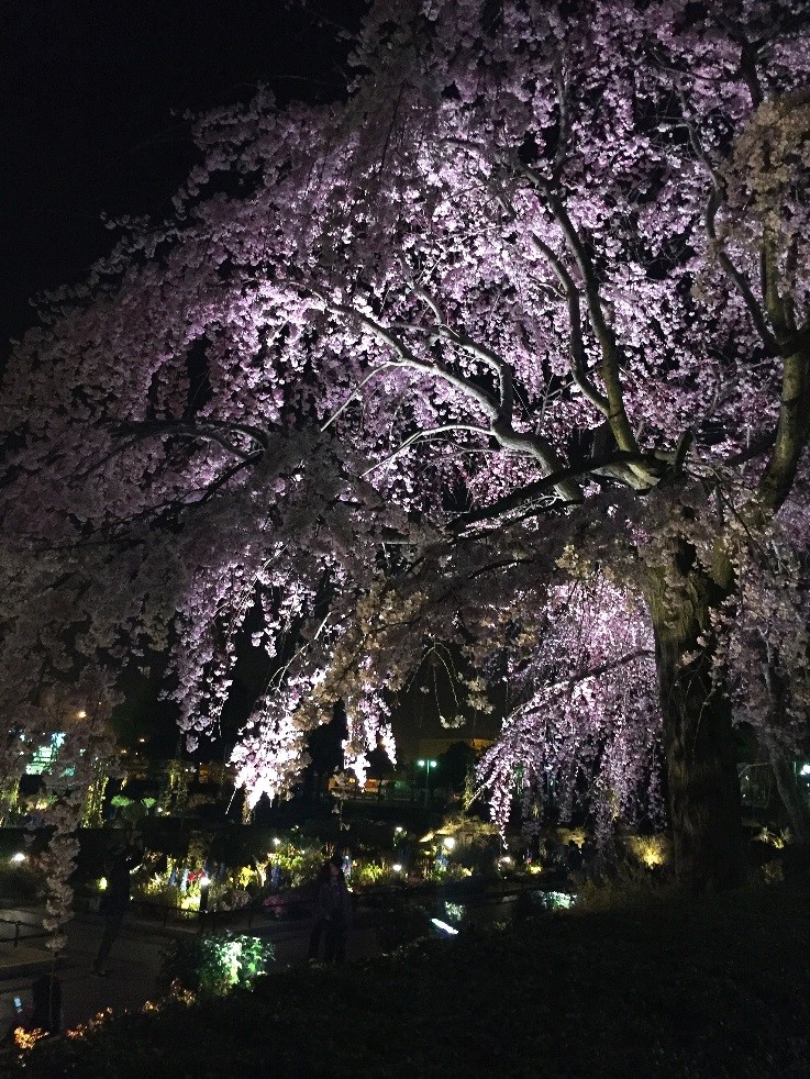 筆者は膨大な課題とサークル活動に追われてゆっくりと桜を楽しむ余裕が無いのですが、先日帰宅途中にライトアップされた桜を見かけました(画像)。夜桜って淡い色の花が夜の暗さにより一層引き立てられてとても綺麗ですよね。