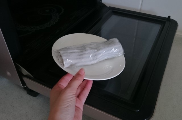 早速濡らしたタオルをレンジで温め蒸しタオルを作り、刺された場所に数分間当ててみました。